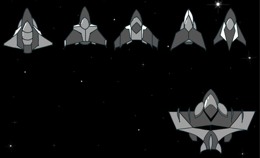 - For this project, I created all the art asset including the background, enemies, the player ship, and the transition screens